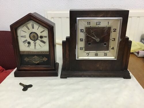 Title (ebay affiliate link): Two antique/vintage mantel clocks German&English spares or repair with keys