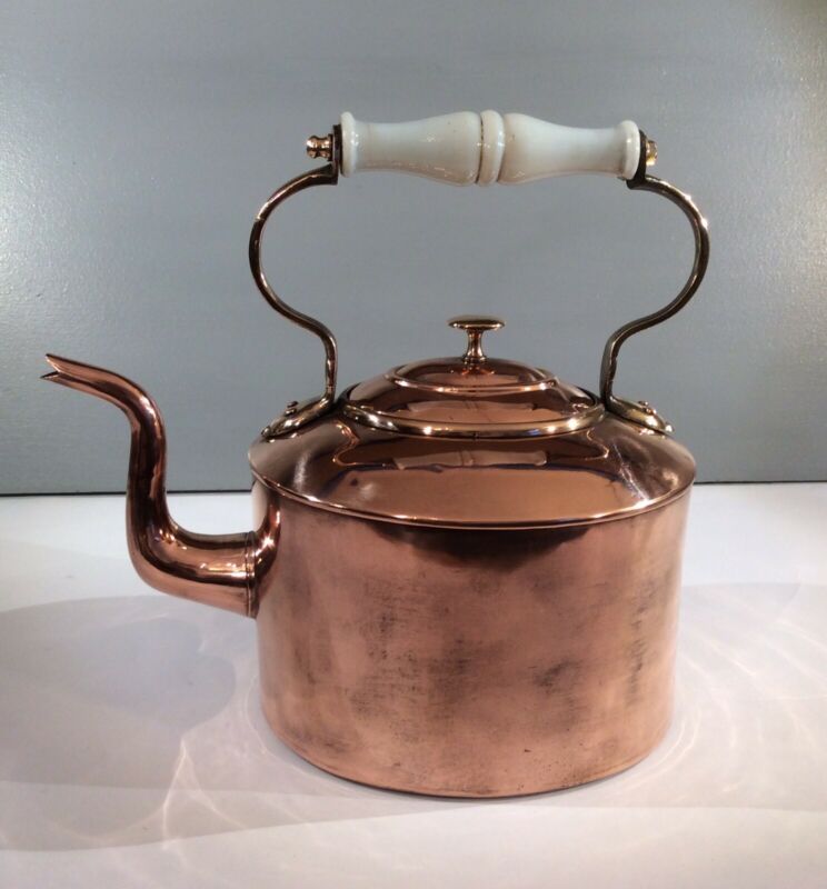 Title (ebay affiliate link): VICTORIAN 19th C OVAL COPPER KETTLE.DOVETAILED CONSTRUCTION.MILK GLASS HANDLE