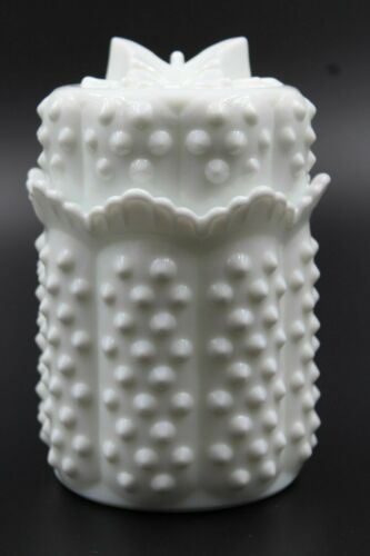 Vintage Fenton Milk Glass White Hobnail Butterfly Lidded Candy Dish Jar, Nice