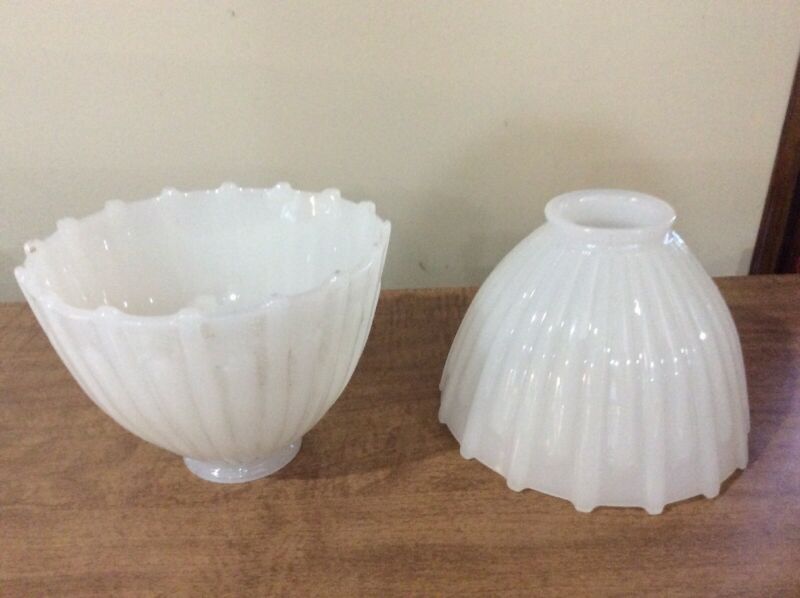 VINTAGE PAIR ART DECO MILK GLASS LAMP/LIGHT SHADES
