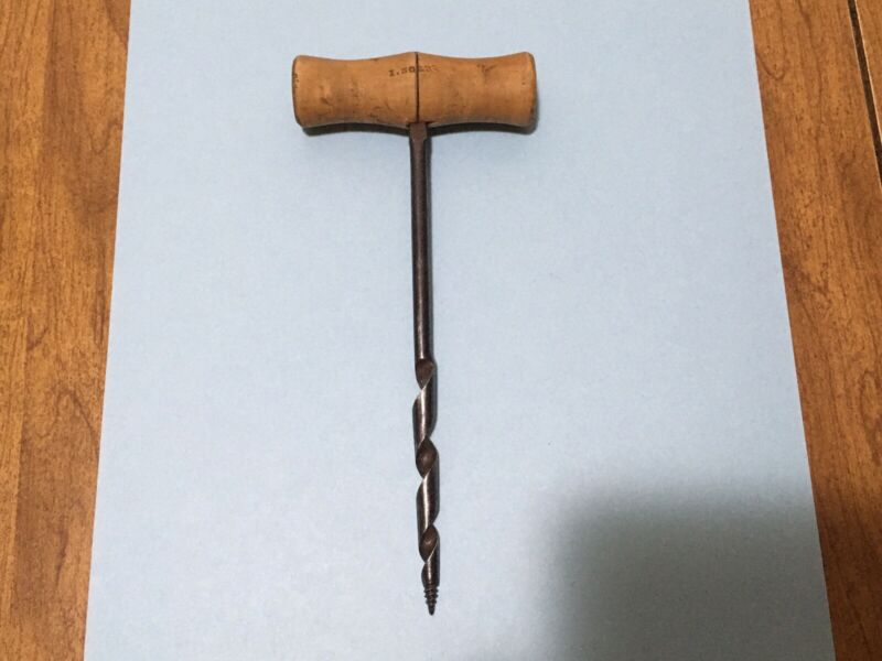 Title (ebay affiliate link): Antique Auger Gimlet Hand Drill T-Handle Signed Wood Handle Tool