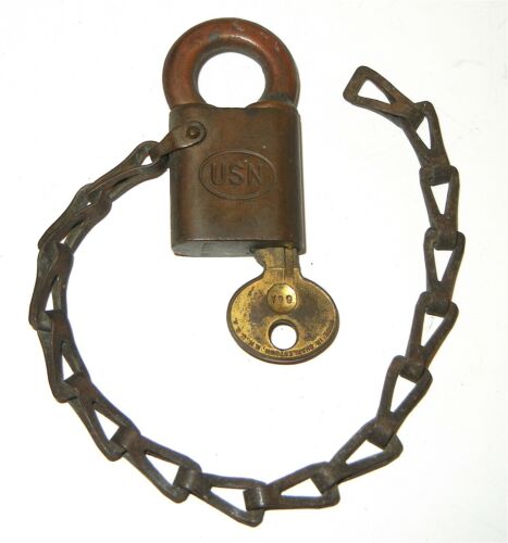 Title (ebay affiliate link): VINTAGE USN US NAVY N2253 CORBIN CABINET LOCK CO BRASS LOCK PADLOCK W/ KEY