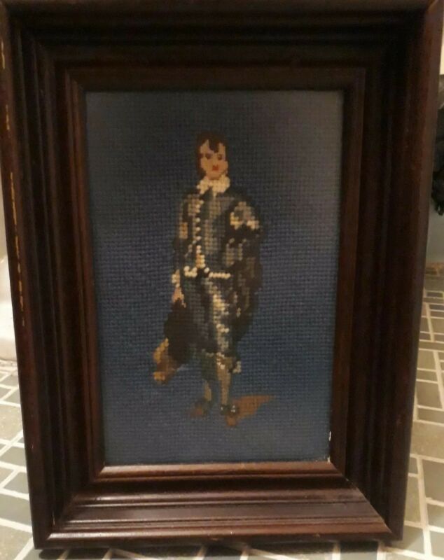 Antique needlepoint framed. Blueboy circa 1892