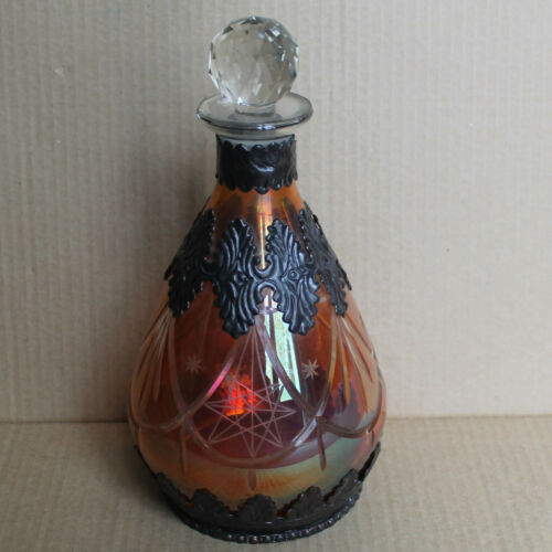 Title (ebay affiliate link): 8.5in Unbranded Orange Glass Bottle & Stopper - Etched Design, Metal Details