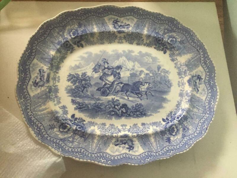 Title (ebay affiliate link): Fab Large Blue & White Transferware Antique Platter Chariot Horses More