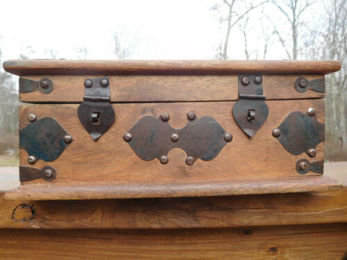Title (ebay affiliate link): ANTIQUE~VINTAGE AMERICAN FOLK ART WOOD DOCUMENT BOX with METAL ADORNMENTS