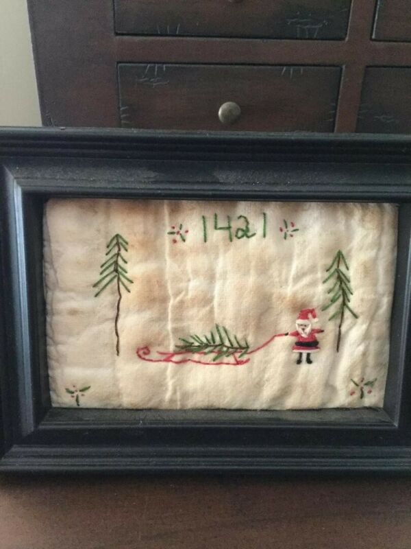 Title (ebay affiliate link): EARLY PRIMITIVE CHRISTMAS HAND EMBROIDERED SANTA SAMPLER