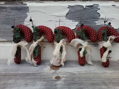 Title (ebay affiliate link): Primitive Christmas Burgundy W/Stars Candy Cane Ornies Bowl Fillers Decor