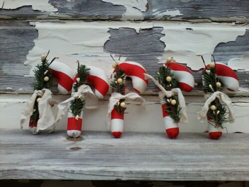 Title (ebay affiliate link): Primitive Christmas Red & White Striped Candy Cane Ornies Bowl Fillers Decor