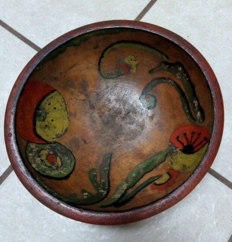 Title (ebay affiliate link): Antique Munising Primitive Hand Painted Wooden Bowl