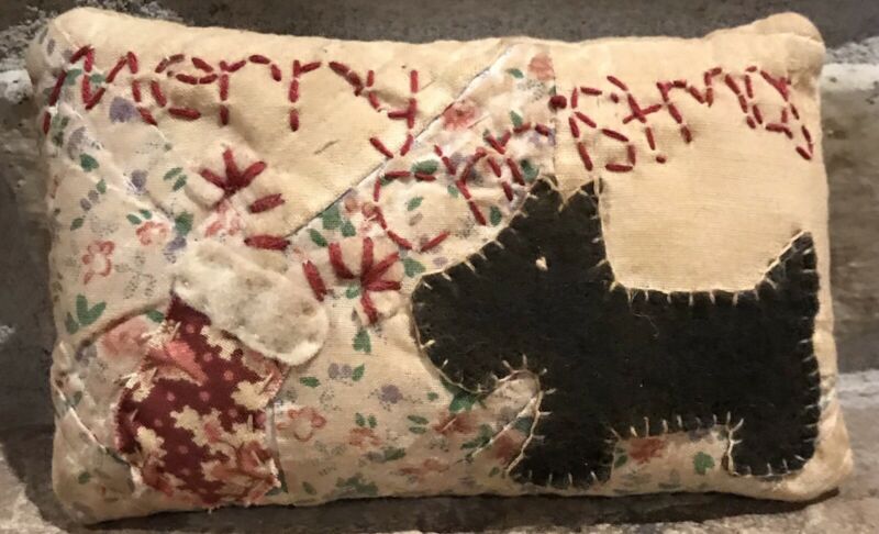 Title (ebay affiliate link): Primitive *Merry Christmas Scottie Dog* Shelf Pillow-Made From Vintage Quilt