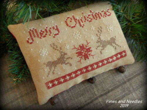 Title (ebay affiliate link): "Merry Christmas" - Primitive Linen Cross Stitch Pinkeep ~ by Pines and Needles