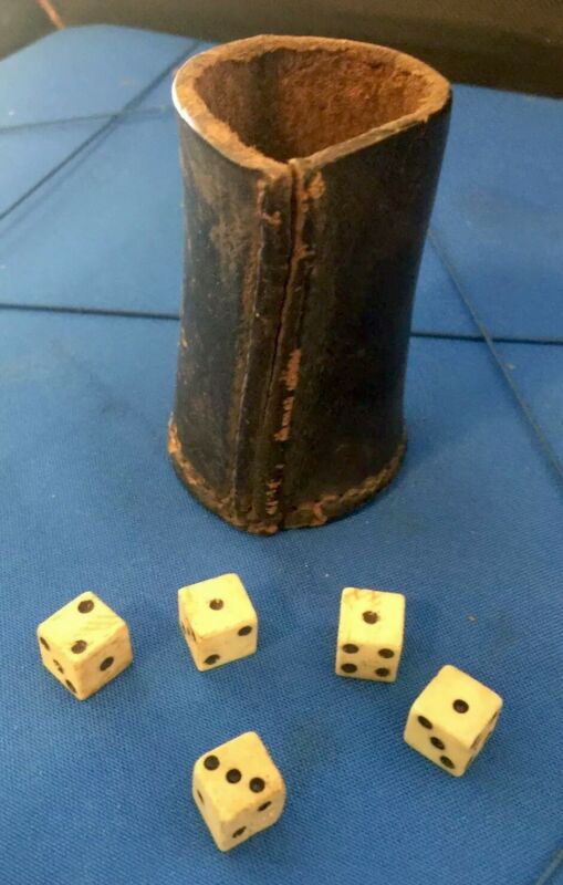 Title (ebay affiliate link): Vintage Heavy Stitched Leather Dice Roller Shaker Cup Gambling W Small Wood Dice