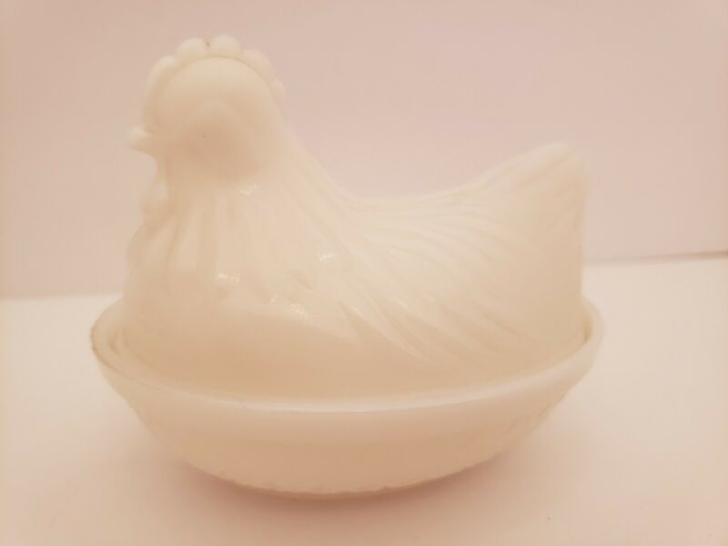 Hen-on-Nest White Milk Glass Chicken Cover Dish 5"