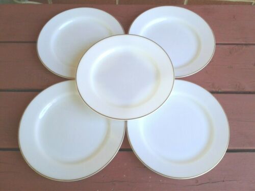 Vintage Crown Corning USA Opal Milk Glass With Gold Trim Plates 9" Set of 5 HTF!