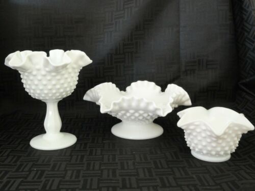 Lot of 3 Fenton White Milk Glass Hobnail Pattern Bowls