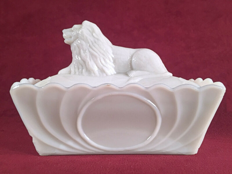 Milk Glass Lion Condiment Packers Container Covered Dish