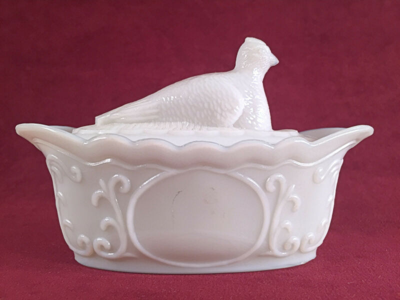 Milk Glass Quail Sauce Dish Condiment Packers Container