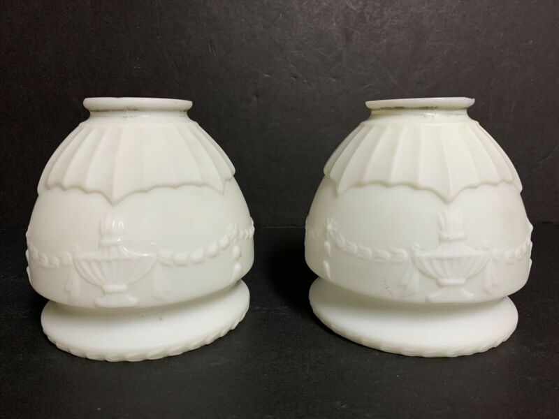 Title (ebay affiliate link): Pair of 2 Vtg Art Deco White Satin Milk Glass Lamp Light Shade Globe~2 1/4" Fit