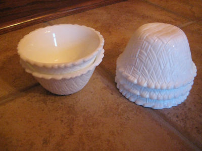 WHITE MILK GLASS EASTER BASKET EGG BOWLS SET OF 5 LOT