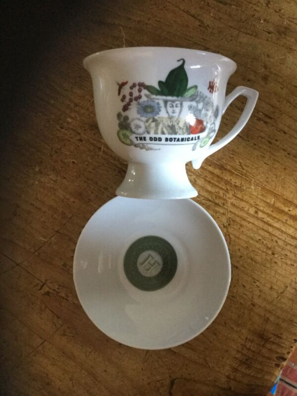 Title (ebay affiliate link): Hendricks Gin Cup and Saucer - The Odd Botanicals - mystery, curiosity, secrets.