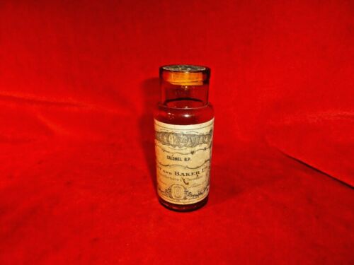 Title (ebay affiliate link): LATE 1800S CALOMEL APOTHECARY MEDICINE BOTTLE W/ ORIG LABEL & CORK MAY AND BAKER