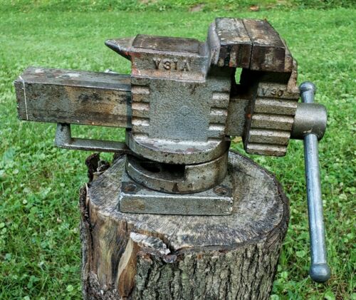 Title (ebay affiliate link): Art Deco Patent Pending Bench Vise V31A Quick Adjust Lever - Needs Restoration