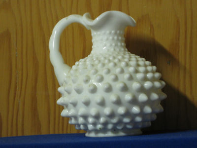 Small 5" Fenton Milk Glass Hob-Nailed marked pitcher