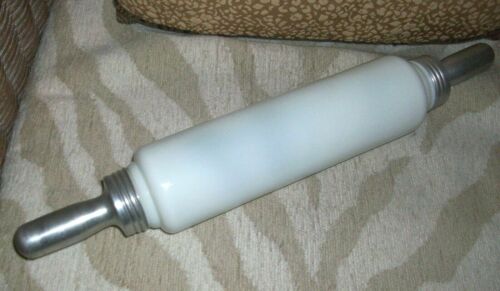 Title (ebay affiliate link): Vintage Depression Milk Glass Rolling Pin With Aluminum Metal Handles