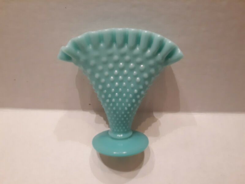Title (ebay affiliate link): VINTAGE FENTON TURQUOISE PASTEL HOBNAIL MILK GLASS MINIATURE FAN VASE Excellent!