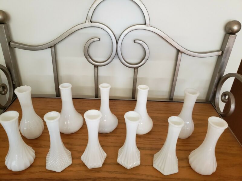 Title (ebay affiliate link): Lot of Eleven 6" Milk Glass Bud Vases Wedding, Floral. 4 Hoosier, 2 EO Brody
