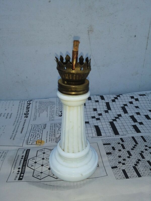 Title (ebay affiliate link): white milk glass miniature oil lamp base made in Hong Kong 5 1/2"