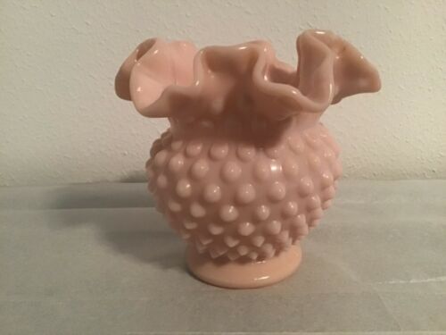 FENTON PASTEL PINK MILK GLASS HOBNAIL RUFFLED EDGE VASE