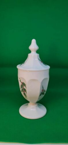 Title (ebay affiliate link): Westmoreland Milk Glass Candy Dish & Lid w/ Hand Painted Christmas Holly