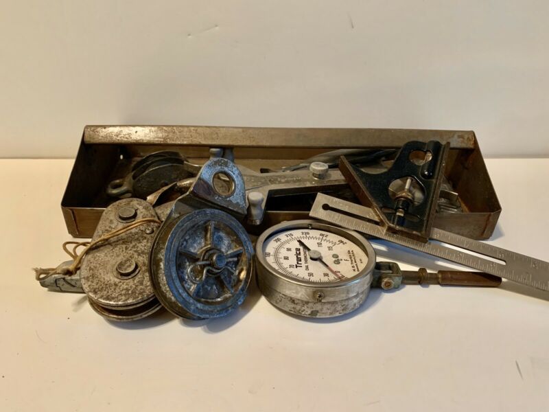 Vintage Tool Lot Junk Drawer Pulleys Tools STANLEY Box Cutter Industrial Vtg