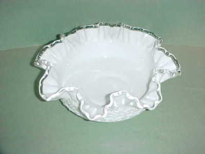 Fenton White Milkglass Silver Crest Ruffled Bowl