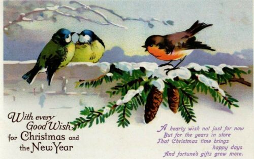 Title (ebay affiliate link): VINTAGE CHRISTMAS GREETING postcard: BLUE TIT & ROBIN BIRDS