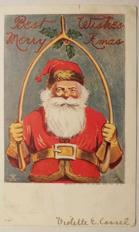 Vintage 1912 Postcard Santa & Large Wishbone - Individed Back - Ullman Mfg.