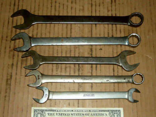 Vintage 5 Snap On Wrenches,5/8,9/16,3/4,11/16",17mm,Old Mechanic Tools,Assort.