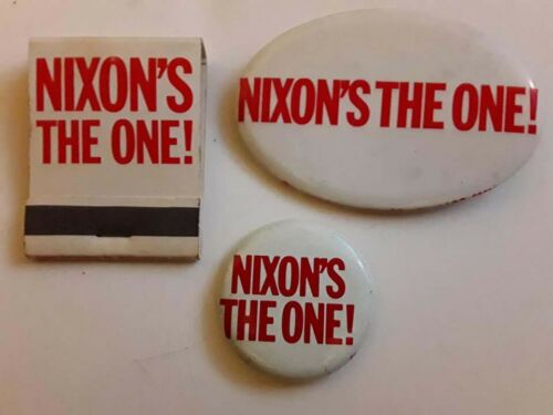 Title (ebay affiliate link): Nixon Campaign Lot #5 - Nixon''s The One Button 2 Pinbacks & Matchbook EX NR
