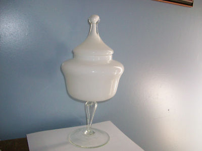 Vintage Tall White-Milk & Clear Glass COMPOTE