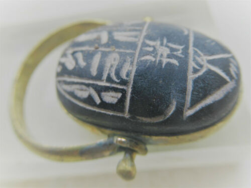 Title (ebay affiliate link): ANCIENT EGYPTIAN BASALT SCARAB BEAD SET IN A GOLD GILDED SWIVEL RING VERY NICE