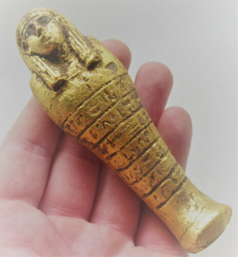 Title (ebay affiliate link): CIRCA 500BCE ANCIENT EGYPTIAN GOLD GILDED USHABTI SHABTI WITH HEIROGLYPHICS