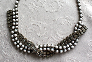 Vintage Rhinestone and Milk Glass Interwoven Necklace