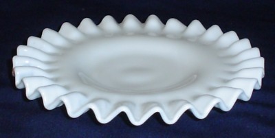 Fenton White Milk Glass Hobnail Ruffled Saucer Plate