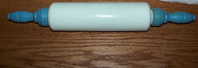 VINTAGE MILK GLASS ROLLING PIN/BLUE WOOD HANDLES