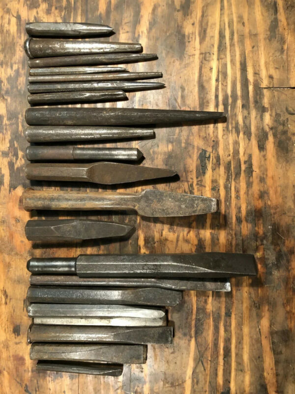 Title (ebay affiliate link): Lot of 21 Cold Chisels, Drift Pins and Punches