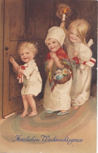 Title (ebay affiliate link): Ellen Clapsaddle ( unsign) Children tiptoe with Xmas presents