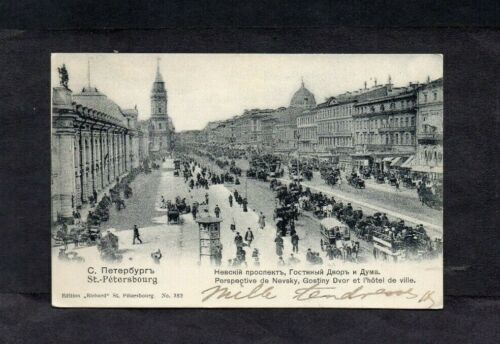 Title (ebay affiliate link): RUSSIA. c1908. ST.PETERSBURG. NEVSKY, GOSTINY DVOR & HOTEL DE VILLE. B&W PC.