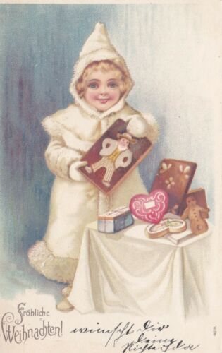 Title (ebay affiliate link): Lovely girl in white with gingerbread collection. c. 1906